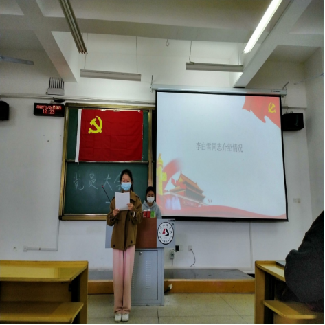 本次大会先由组织委员肖昌浩然老师汇报了关于李白雪同志的审查情况,接下来由李白雪同志在大会上报告自己的个人基本情况并表达自己加入中国共产党的决心。