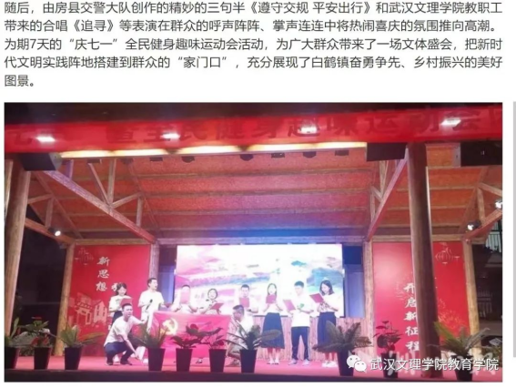 在“湖北日报”《房县白鹤镇:凝心聚力燃激情,运动赛场展风采》的专项报道中,本次yl23455永利主题党日活动也被提及表扬,也共证了教育公司党总支与十堰市房县白鹤镇伏溪堰村的乡亲们的血浓乡情。