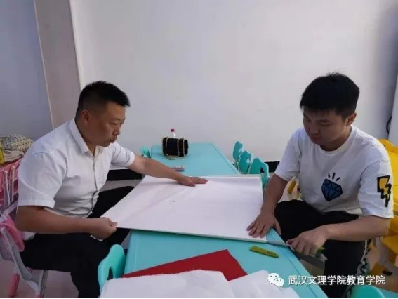 学前教育系夏江南与张澜两位老师正在做演出前准备,老师们互相协调,配合默契。