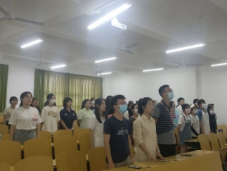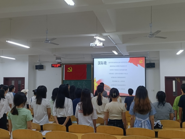 全体起立,奏唱国歌后。我支部向大会报告了对预备党员杜晓倩等14名同志的审查情况及结果。随后14位预备党员按顺序向支部大会介绍本人在预备期间的表现情况。