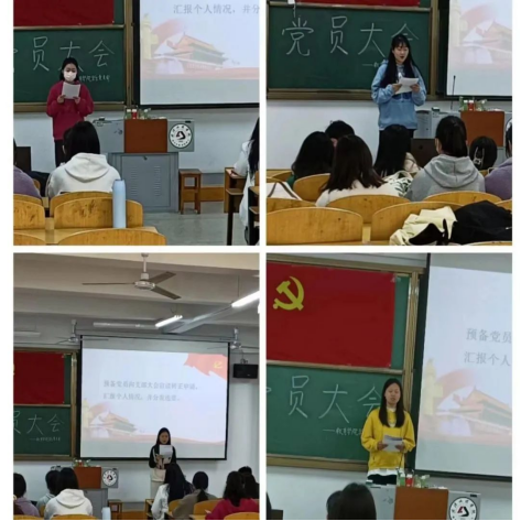本次会议严格按照党组织程序,先由王素素等3名同志宣读转正申请并在大会上报告了近一年以来作为预备党员的思想、生活、工作等情况,每名同志都能以正式党员的标准来要求自己,思想上树立了坚定的共产主义信念,保持热情,不忘初心,生活上乐于助人,尊重老师,关心同学,待人友好,工作上认真负责,敢于接受挑战,学习上积极主动,勤奋努力。