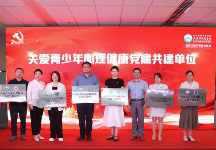 杜永成书记和武汉高公司党建代表一起,启动医校融合关爱青少年心理健康党建共建机制。