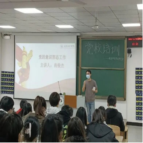 伴随着二十大的召开,新党章也随之出台,杨愿老师给同学们阐述了新党章的相关知识,杨老师指出,党章是党员加强党性修养的根本标准。党章对党员需要掌握的党的基本知识做出了系统阐述,对党员的权利和义务、党员领导干部应该具备的基本条件、党的纪律等做出明确规范,为广大党员、干部进行自我教育、自我提高提供了最好的教材。杨老师希望同学们能够仔细研读党章,认真学习其中的重要意义,借以增强同学们的思想自觉,政治自觉,行动自觉。