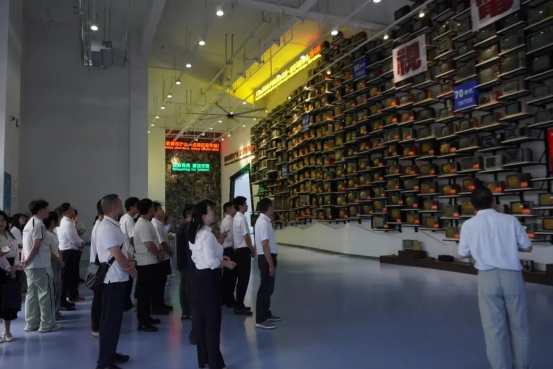 宣讲结束后,全体人员前往位于长江新区的武汉格林美城市矿产低碳循环产业园,开启实地参观学习之旅。在园区讲解员的引导下,参观队伍来到城市矿山博物馆,在这里数百台“老电视机”按照年代顺序整齐排列,构筑起一道跨越半个世纪的工业文明长廊。