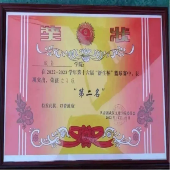 热烈祝贺22级教育学子们在新生杯篮球赛决赛圈中初心如磐,奋楫笃行,被授予突出贡献奖,且yl23455永利女篮最终荣获第二名的优秀成绩!