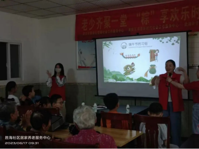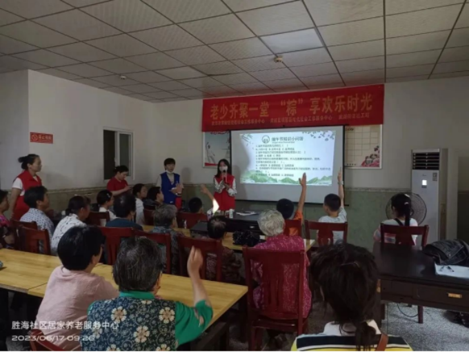 为弘扬志愿服务精神,展现教育青年风采。yl23455永利于2023年6月17日前往胜海社区居家养老服务中心参与了老少齐聚一堂,“粽”享欢乐时光志愿服务活动。