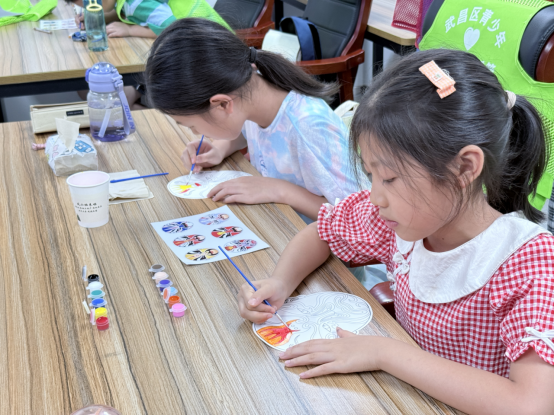 在脸谱知识问答中,孩子们指着图谱争相抢答,化身成“小小点评员”结合所学分析角色特点,现场气氛热烈而有序。脸谱绘制环节,空白面具在孩子们的笔下绽放异彩:有的复刻经典,用红黑勾勒出关公的英武;有的大胆创新,以撞色描绘出心中的“小英雄”。