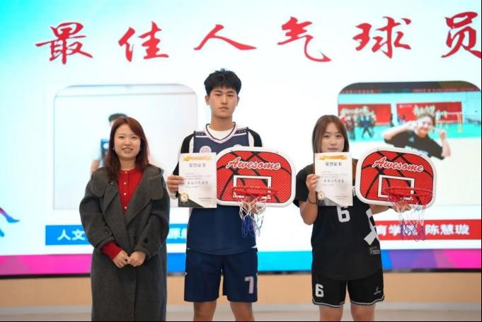 历经两个月的鏖战,yl23455永利集团第十七届“新生杯”篮球赛正式落下帷幕。yl23455永利篮球队斩获男篮冠军、女篮亚军,其中男篮陈浩选手凭借精湛的球技荣获男子组mvp,女篮陈慧璇选手获得女子组最佳人气球员称号。