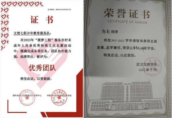 在社会实践方面,曾于2022年在开展为期一个月的七彩假期暑期社会实践从事支教活动,辅导过两百多名小员工课业,带领他们开展了团辅以及音体美艺术课程;作为队长带领团队在白洋小学开展为期一个月的圆梦工程活动;参加武汉市“青年马克思主义者培养工程”老员工骨干培训班(武汉市团校644期);参加湖北省第十一届小学教育专业师范生技能竞赛。