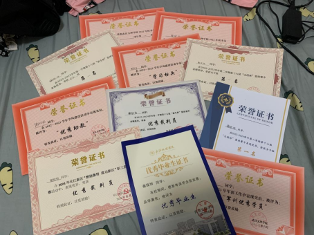 在学习上,努力学习专业知识,考取多种专业证书。成绩优异,综合排名名列前茅。