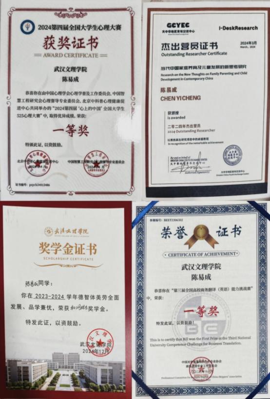 社会实践方面,2024年任文理七彩少年教育服务队队长,统筹志愿服务,联系服务对象、分配任务,带领团队开展青少年课业辅导与兴趣活动,保障服务顺利进行。同年在公司心理健康教育中心实习,积极参与各项活动,表现获认可。