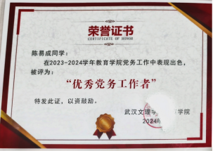 2022-2024年任班级副班长,协助处理考勤、通知传达等日常事务,组织学习分享会推动学风建设,作为师生沟通纽带,及时传递双方意见与反馈。同时期任教育公司党务小组组长,负责整理入党材料、跟进党员发展流程,策划主题党日活动(如专题学习、红色观影等),协调团队分工,保障党务工作有序推进。
