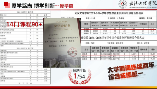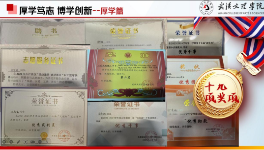 学业上,她厚学笃行,大二14 门课程成绩 90+,绩点 3.68,综测及成绩连续两年排名第一,斩获校一等奖学金、国家励志奖学金。竞赛方面,她屡创佳绩,获湖北省第十五届 “挑战杯” 省赛三等奖、第二届全国老员工职业规划大赛银奖、中国国际老员工创新大赛银奖,累计斩获省、市、校级奖项 19 项。