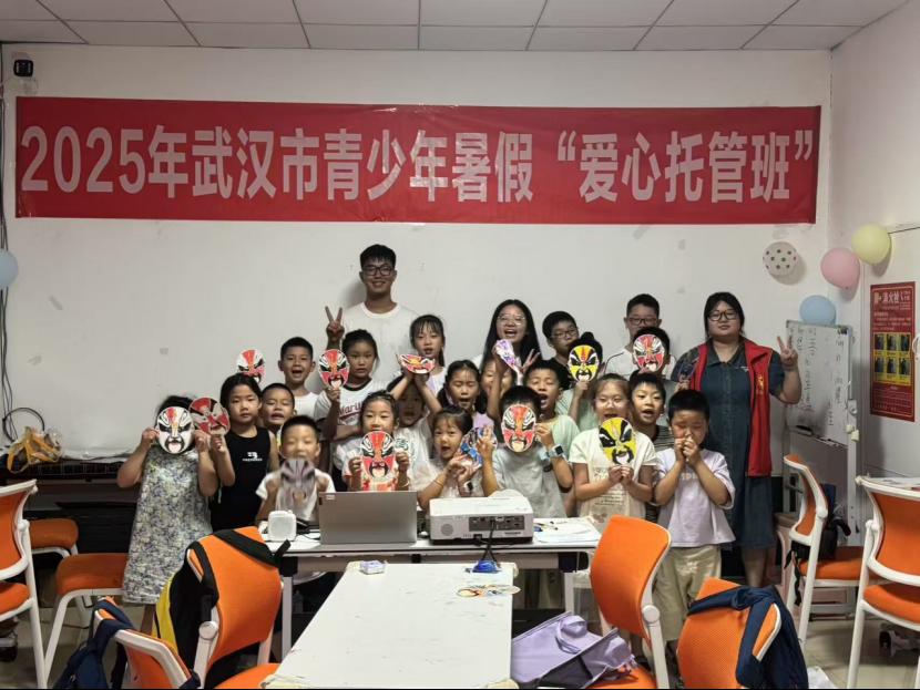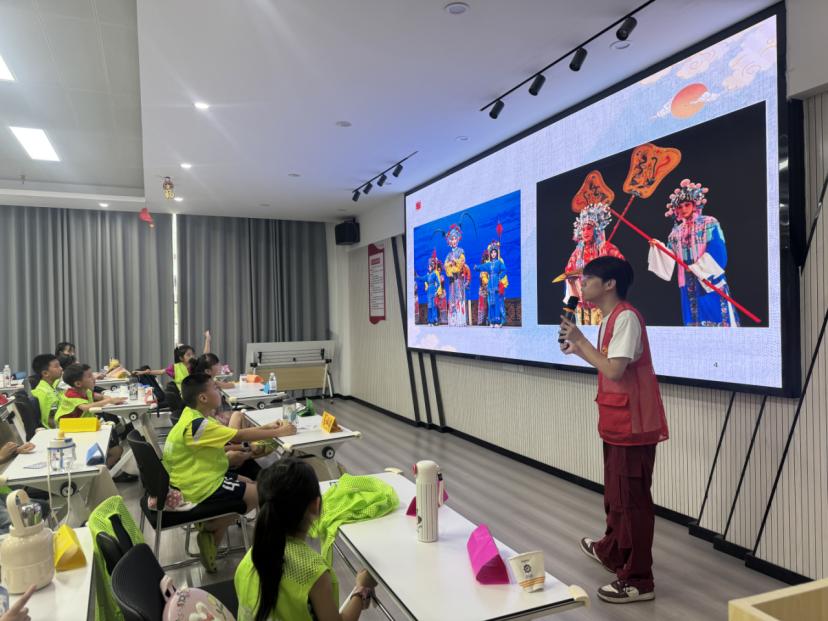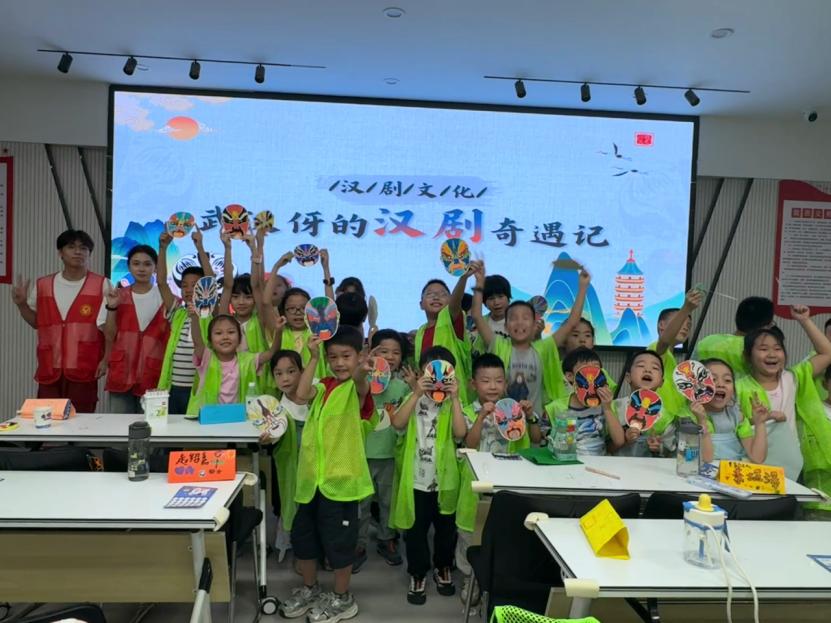 课堂之上,志愿服务队的队员们是另一番热情洋溢的景象。队员们化身文化使者,以专业的态度和饱满的激情,带领孩子们踏上了一场穿越时空的“汉剧之旅”。从聆听老武汉的轮渡汽笛、市井叫卖,感受城市脉动;到走近汉剧大师陈伯华的艺术人生,领略“陈派”唱腔的婉转悠扬;从辨识“生旦净丑”四大行当的鲜明特色,到解读五彩脸谱背后忠奸善恶的深刻寓意;从模仿充满生活气息的武汉方言念白,体味乡音的独特魅力,到亲手绘制脸谱面具,体验角色扮演的乐趣……志愿者们深入浅出,寓教于乐,将汉剧这一国家级非物质文化遗产的深厚底蕴与独特魅力,化作孩子们心中一颗颗鲜活的文化种子。孩子们专注的眼神、踊跃的发言、稚嫩却认真的表演,是对队员们辛苦付出最好的回报。
