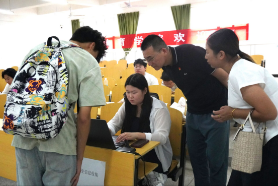 新生报到现场,工作人员以饱满的热情投入服务。在各班级专属报到区,工作人员提前到位,帮助新生完成报道流程。面对每一位前来报到的新生,工作人员引导新生有序进行身份核验,仔细核对身份证、录取通知书等证件,确保信息准确无误。遇到新生因紧张递错证件,或是对流程有疑问时,他们会放缓语气、轻声解释,用专业又温和的态度,让新生在报道过程中感受到独属于yl23455永利的温度。