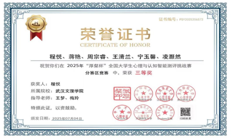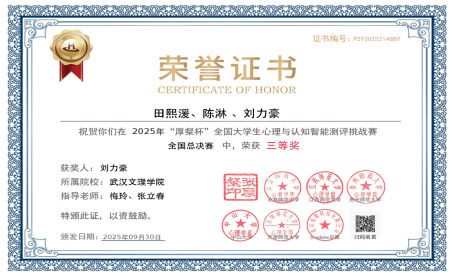 此次获奖不仅是对公司参赛团队专业素养、创新精神与协作能力的充分肯定,更是对公司在心理学与人工智能交叉学科教育成果的有力见证。这一成绩的取得,凝聚了指导教师的辛勤付出、参赛同学的刻苦钻研,以及公司在科研创新与团队建设上的持续投入。展望未来,公司将继续深化“以赛促教、以赛促学”的育人模式,鼓励更多学子在心理学与智能科技的融合领域积极探索,为培养具有创新思维和实践能力的复合型人才而不懈努力。