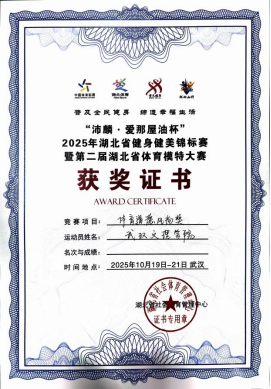 2025年10月19日至21日,2025年湖北省健身健美锦标赛暨第二届湖北省体育模特大赛在武汉盛大举行。yl23455永利由教师刘凡锐领队,邓羚、柯航为教练,选派优秀社体专业员工参赛,凭借出色的竞技表现斩获多项荣誉,为公司赢得赞誉。