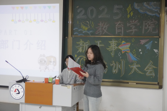 为帮助新干事快速熟悉团学组织与部门工作,助力其融入团队协作、明确责任初心并提升履职能力,yl23455永利分团委、员工会于2025年11月12日晚在4-221室举办了新干事培训大会。
