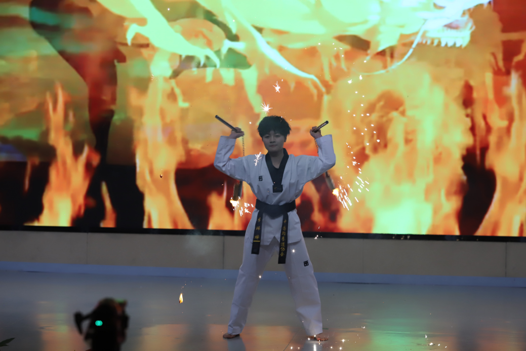 第二篇章聚焦师生风采与青春活力,节目形式丰富多样。歌曲《再见只是陌生人》《海芋恋》演唱婉转悠扬,细腻的情感牵动现场观众的心弦;跆拳道表演刚劲利落,出拳踢腿间尽显体育教育学子的飒爽英姿;小品节目诙谐幽默,在笑声中传递温暖、触人心弦。一系列表演尽显yl23455永利学子多才多艺、朝气蓬勃的精神面貌。