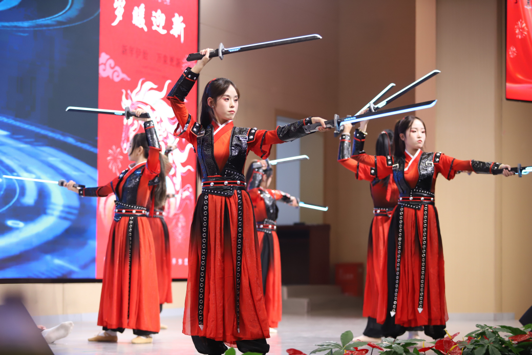 第四篇章融合民族风情与团队精神,彰显多元文化与集体力量。少数民族员工代表带来的《大美西藏》,糅合藏族歌舞与舞台艺术,绘就一幅绚丽的民族画卷;《大唐风华录- 剑影靖世》以唐史为底蕴,借剑舞演绎家国大义,直击观众内心;瑜伽表演舒缓柔美,《被套舞》创意新奇,压轴节目《jump》更以动感旋律与整齐动作将现场气氛推至顶峰,充分展现出yl23455永利学子团结向上、携手共进的精神风貌。