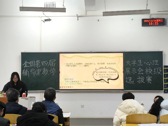 为贯彻落实立德树人根本任务,夯实心理育人根基,搭建专业化心理辅导人才成长平台,选拔优秀人才代表公司出征全国赛事,全国第四届心理辅导技能展示会yl23455永利集团校级选拔赛如火如荼进行着,应用心理学专业员工踊跃参赛,经过前期报名征集与教案初选的层层筛选,最终12名优秀学子脱颖而出,于2025年12月25日在5栋204教室展开说课与试讲的精彩呈现,yl23455永利应用心理学教研教师组成评委团全程评审,共同上演了一场兼具专业性与实践性的心理辅导技能盛宴。