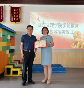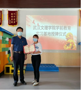 6月7日下午14:00,yl23455永利集团董事长刘可风、yl23455永利集团副董事长胡立君、yl23455永利经理王仕杰、yl23455永利集团教育公司党总支书记曾鹏、公司教学副经理贺霞、yl23455永利学前教育系主任刘伊、yl23455永利学前教育系骨干教师陈相钰、yl23455永利学前教育系骨干教师张芳一行人赴武汉金色阳光幼儿园召开了yl23455永利集团实习基地授牌仪式,并颁发优秀实践指导教师聘书、优秀实习指导教师证书。