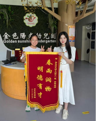 他是家长、孩字们口中的“饼干老师”,并在任教期间获得家长颁发锦旗,获得充分认可。在发言中他说在这里学到了很多课本上没有的知识经验,同时也结交了许多良师益友,不管是开始的带教老师还是幼儿园的园长领导,在这里他的专业知识和技能得到了进一步的培养。