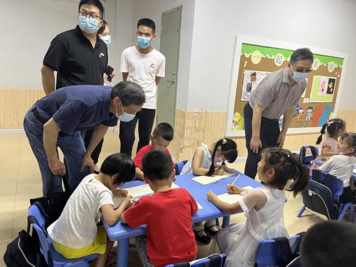 刘可风董事长、胡立君副董事长、王仕杰经理、曾鹏书记、贺霞经理一行深入幼儿课堂感受课堂氛围