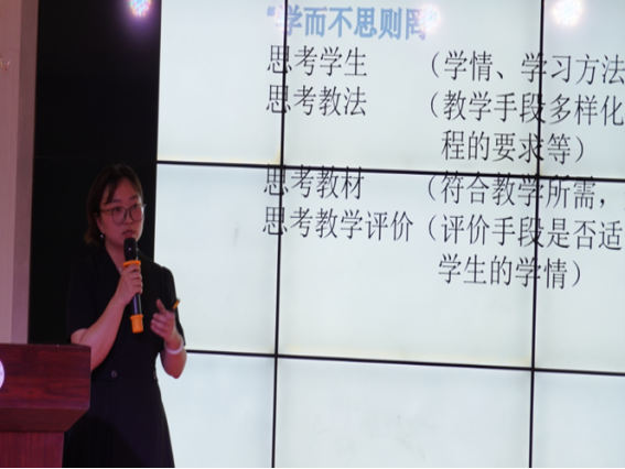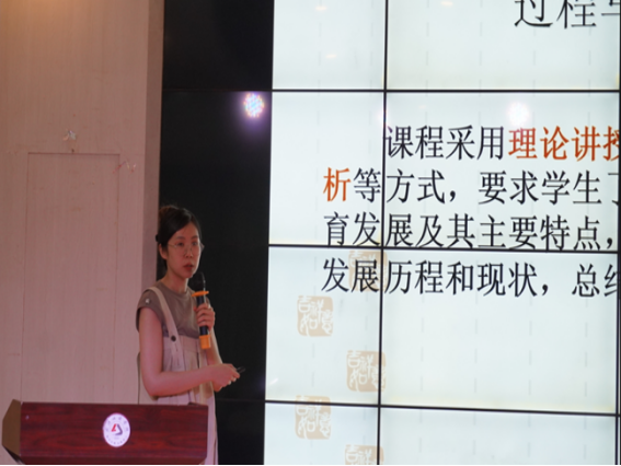 第四门汇报课程是《学前教育史》,由夏婉晴老师与我们分享建设经验。夏婉晴老师分别从五个方面对该课程进行介绍:一、课程申报基本信息;二、课程目标及教学设计;三、课程建设及应用情况;四、课程改革取得成果;五、课程特色及创新。在授课的同时提高员工各方面的素养,激励员工献身教育事业的精神,提出了需要解决的重要问题,改变了教学方法,让课堂更加有意义!