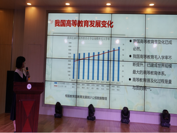 第二门汇报课程是《职业生涯规划与就业指导》,由贺霞副经理与我们分享经验。贺经理为我们介绍了该课程的建设发展历程,这门公共必修课程从2009年根据教育部的要求在大一员工中开设,在公司有较长的发展历程。课程建设过程中,课程主讲教师始终重视课程建设的成果积累,以课堂中的问题为出发点,形成教研论文;以课程内容统一化为内容,定期开展教研活动;以教学方法为研究中心形成教研课题;以课程的教师团队建设出发,思考怎样使身份不同的教师团队达到合利。最后贺经理总结了课程建设中的五点经验:第一,授课过程中老师自身应该有对课程的深入思考;第二,教师应该将课程中思考的问题转化成自己的教学研究成果;第三,教师团队建设的重要性;第四,课程中的教学方法应用、注重学科融合;第五,重视一流课程申报时的类型分析。