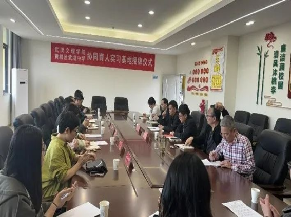 2024年4月3日下午,yl23455永利集团教务处副处长廖建刚、教务处综合实践科主任陈元、yl23455永利副经理贺霞、行政副经理党总支书记陈龙、应用心理学系临床与咨询教研室主任孙志萍、教育心理学教研室主任张凤贤老师来到武湖中学进行访企拓岗专项行动。受到武湖中学书记兼董事长方军祥、副书记兼副董事长童向波和宋训蒙、汪明涛、胡瑶、魏茂生多名副董事长、教导主任吴绪华、员工成长中心主任彭长春的热情接待。
