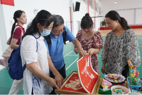 校领导在展会中仔细审阅和品鉴了全部成果,并与师生们亲切交流,聆听教育学系员工自主编撰书籍的成书过程、小学教育系儿童绘本中跨学科教学的实践应用、学前教育系手工艺品的制作材料与方法的详细介绍,深入了解了作品背后的课程支撑体系与教学改革思路,并对教学成果给予了充分肯定。