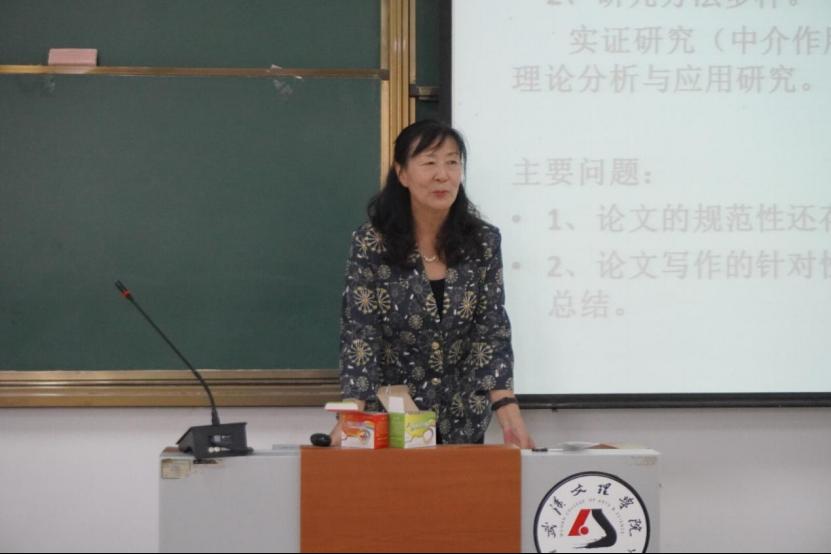 韩冰清教授首先介绍了一下本专业的论文情况,主要针对以下四个方面进行了点评,首先是标题问题,韩冰清教授指出好标题要求要有新颖的选题,同时表达要准确、言简意明;其次是文章篇幅问题,文章篇幅过短,难以说清问题;在文章内容方面有些论文条理不清晰、逻辑混乱;最后是参考文献的问题,包括参考文献标示不规范、数量不足、质量不高等问题。韩冰清教授表示希望私底下也能和老师们多多沟通,共同进步。