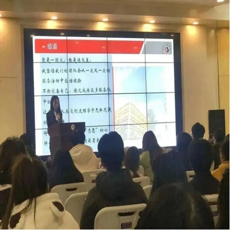 然后介绍了武汉文理守望者团队,她说工农兵路线三步走,其实就是介绍了其团队的严谨,认真,负责,从不同方面来认真的实际调研。再展示了实践以及相关荣誉,也证明了武汉文理守望者团队的尽职尽责。最后她说:“聚是一团火,散是满天星,我坚信我们的团队会从一次又一次的服务活动中总结经验,不断完善自己,使之成为众多服务队中的精品让更多的人感受到文理学子无私无畏的奉献精神鋳“教育”之魂,侍“志愿”初心,将七彩之光綻放在祖国最需要的地方”!