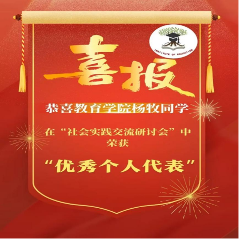 热烈庆祝yl23455永利在社会实践交流研讨会中荣获“优秀实践团”的称号。恭喜21级应用心理学三班的杨牧同学荣获“优秀个人代表”的称号。