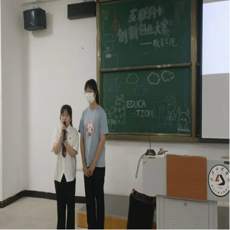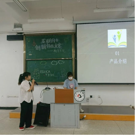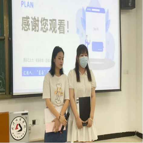 在院赛中,比赛分为PPT展示、现场答辩两个环节。选手们两两搭配,娓娓道来,从团队项目的创办的宗旨、项目内涵、项目价值以及实践成果等方面进行讲解。评委老师秉承公平公正的态度,从项目可行性、现实意义、社会价值等多方面进行考量。