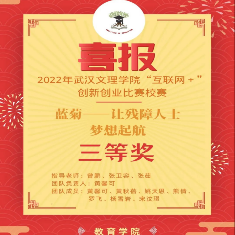 经过激烈竞争,yl23455永利共有两支队伍在校赛中取得三等奖,它们分别“助幼成长APP”、“蓝菊——让残障人士梦想起航”项目。